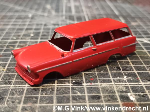 waar het voertuig opstaat is bovenstaande foto. Of het heirnaast staande model het juiste model is, is een gok, maar dit model werd in 1964 nieuw gebouwd bij Opel, dus de gok is dat dit het juiste model is. Het model is afkomstig van Brekina. |